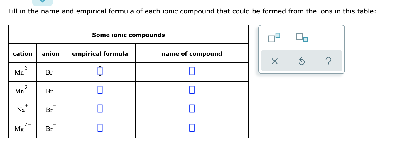 Solved Fill In The Name And Empirical Formula Of Each Ionic Chegg Com